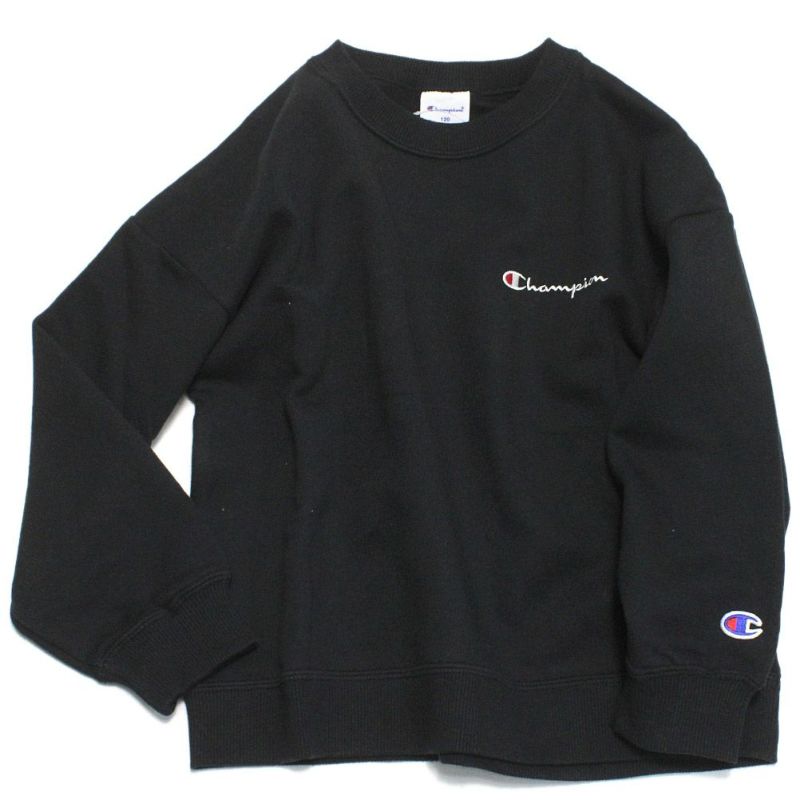 [チャンピオン キッズ] CREW NECK ルーズスウェット ブラック(90)