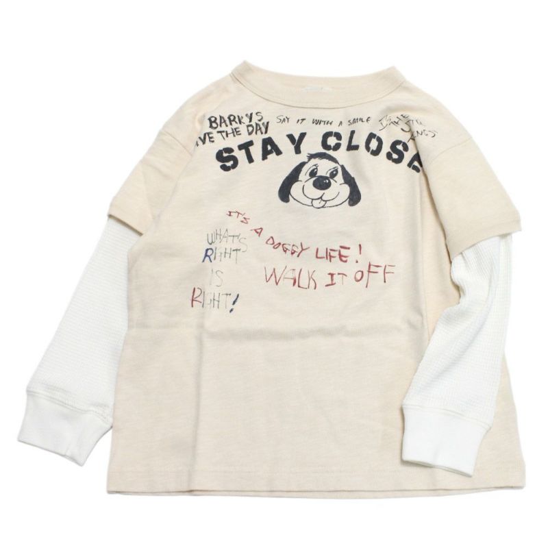 ・個性的な落書きプリントとわんこのプリントが目を惹くロンT