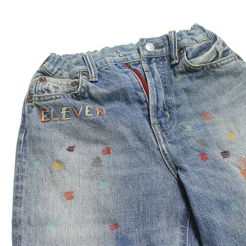 ・カラフルなリメイク風の刺繍が個性的なデニム