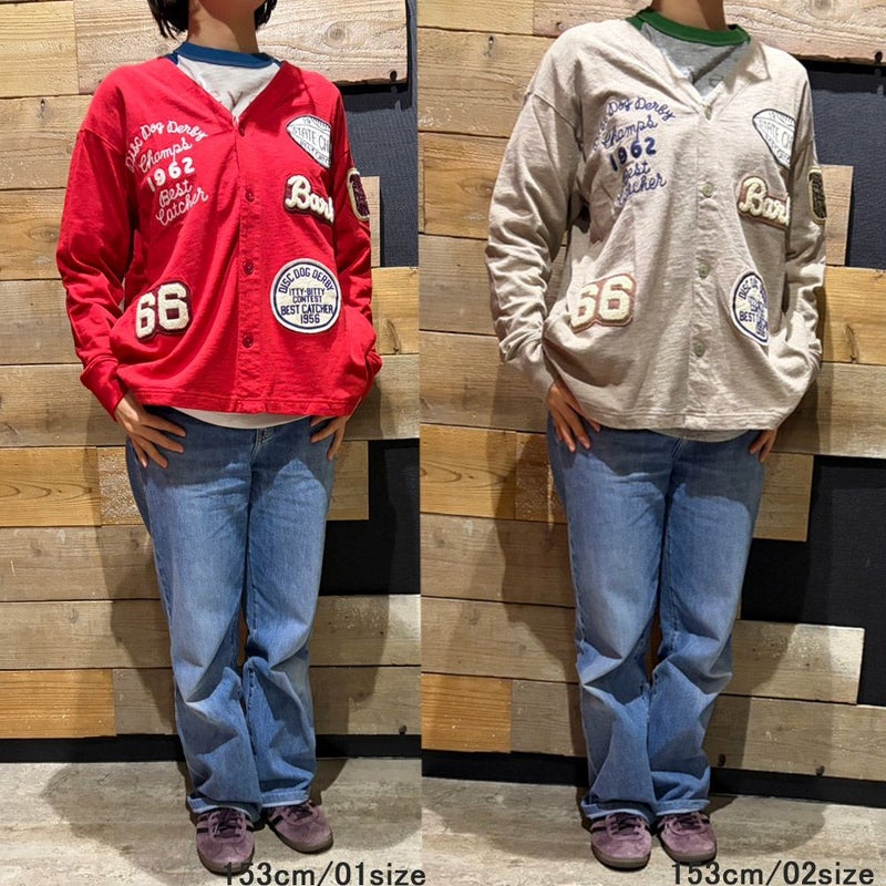・大きなワッペンや刺しゅうが目を惹くカーディガン