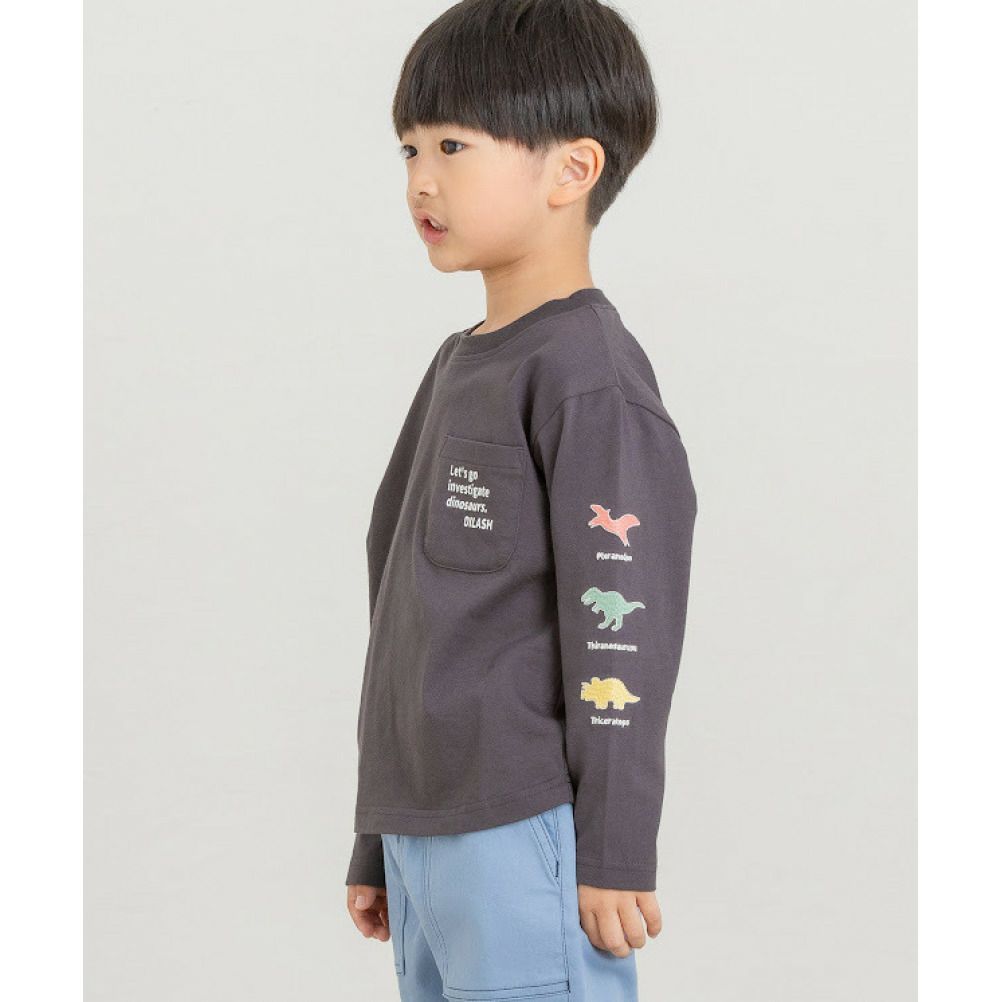 [ディラッシュ] 刺繍天竺長袖Tシャツ チャコール(CH)