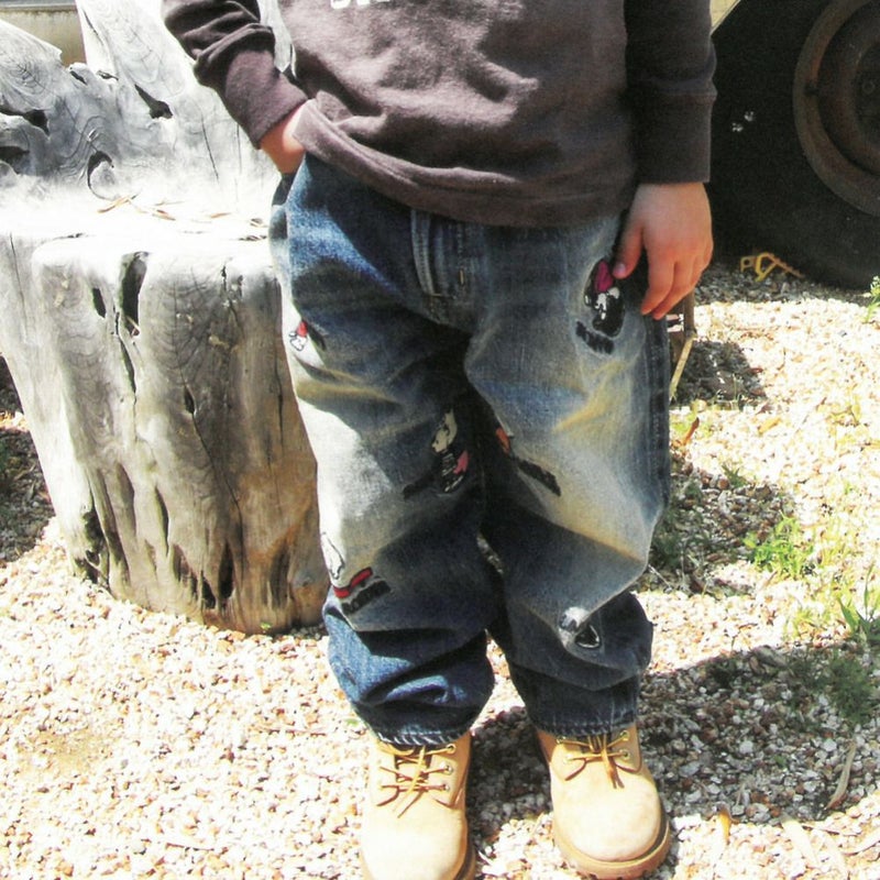 ・PEANUTSメンバーを刺繍したデニムパンツ
