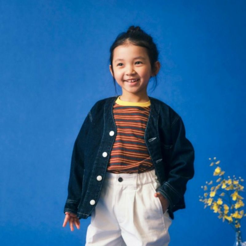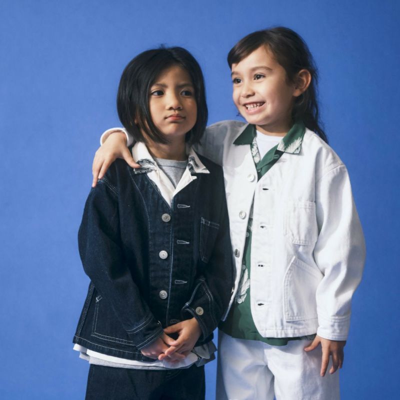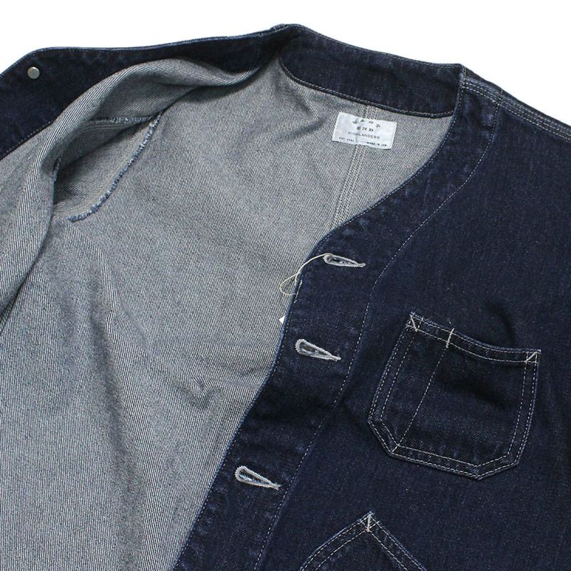 “イーストエンドハイランダーズ”のノーカラーデニムジャケット