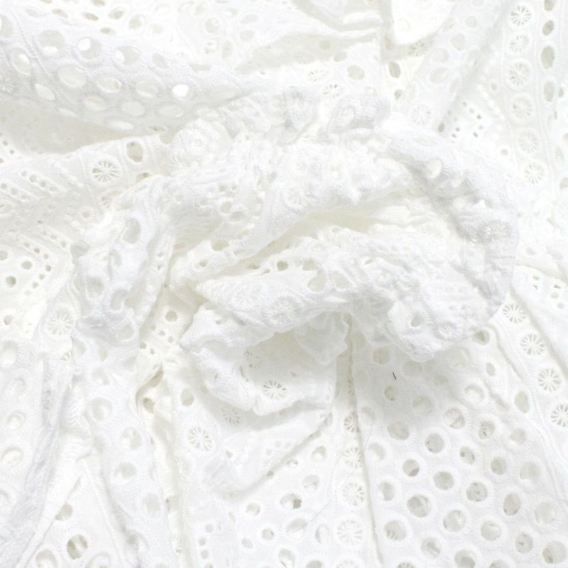 ・アイレット刺繍を施したコットン地にカットワークレース