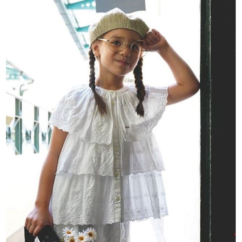 ・コットン地にアイレット刺繍のスカラップレースを採用