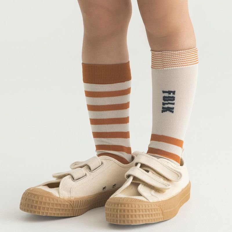 [フォークメイド] ボーダークレイジーソックス アイボリー×ブリックオレンジ