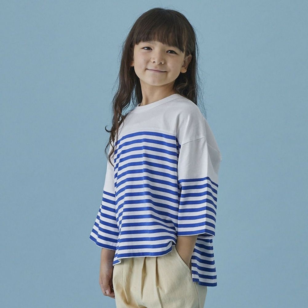 5. [フォブ] ボーダー切り替えTシャツ(7分袖) ブルー(BL)