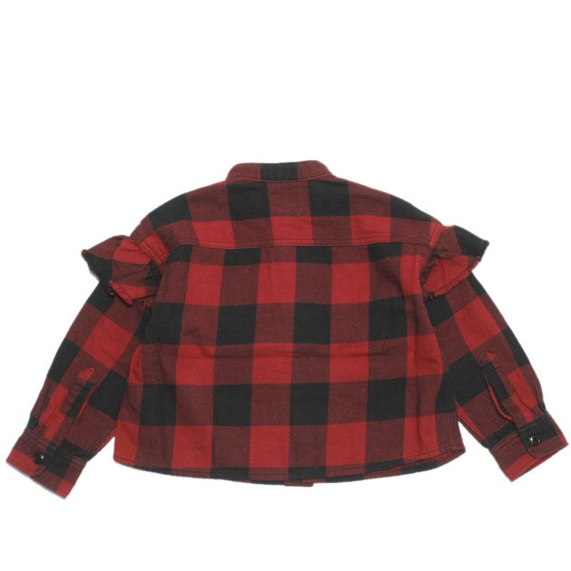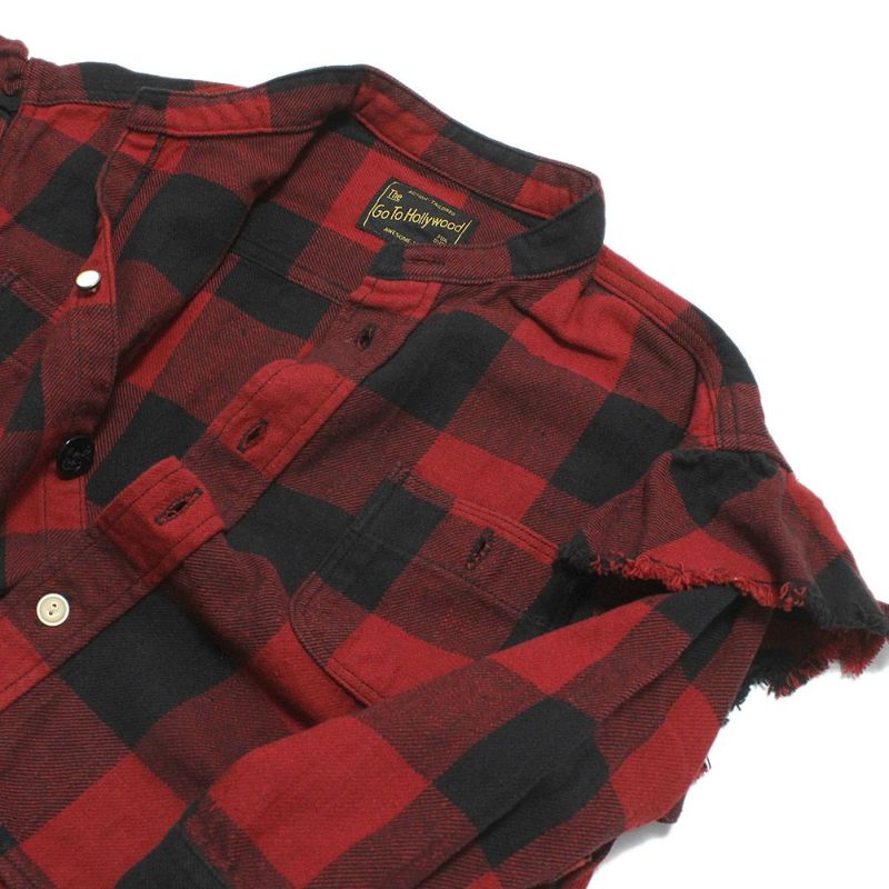 [ゴートゥーハリウッド] ツイル ブロックチェック フリフリ シャツ 5R赤
