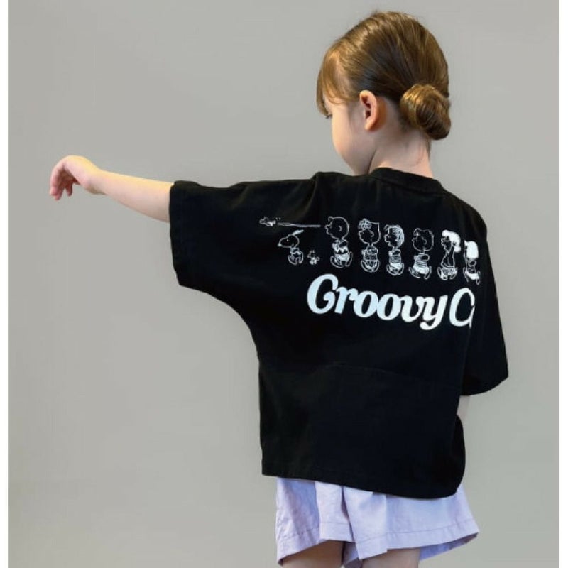 4. [グルーヴィーカラーズ予約専用] テンジク SNOOPY ALL STAR WIDE シルエット TEE(6分袖)【4月入荷予定】 2BK黒