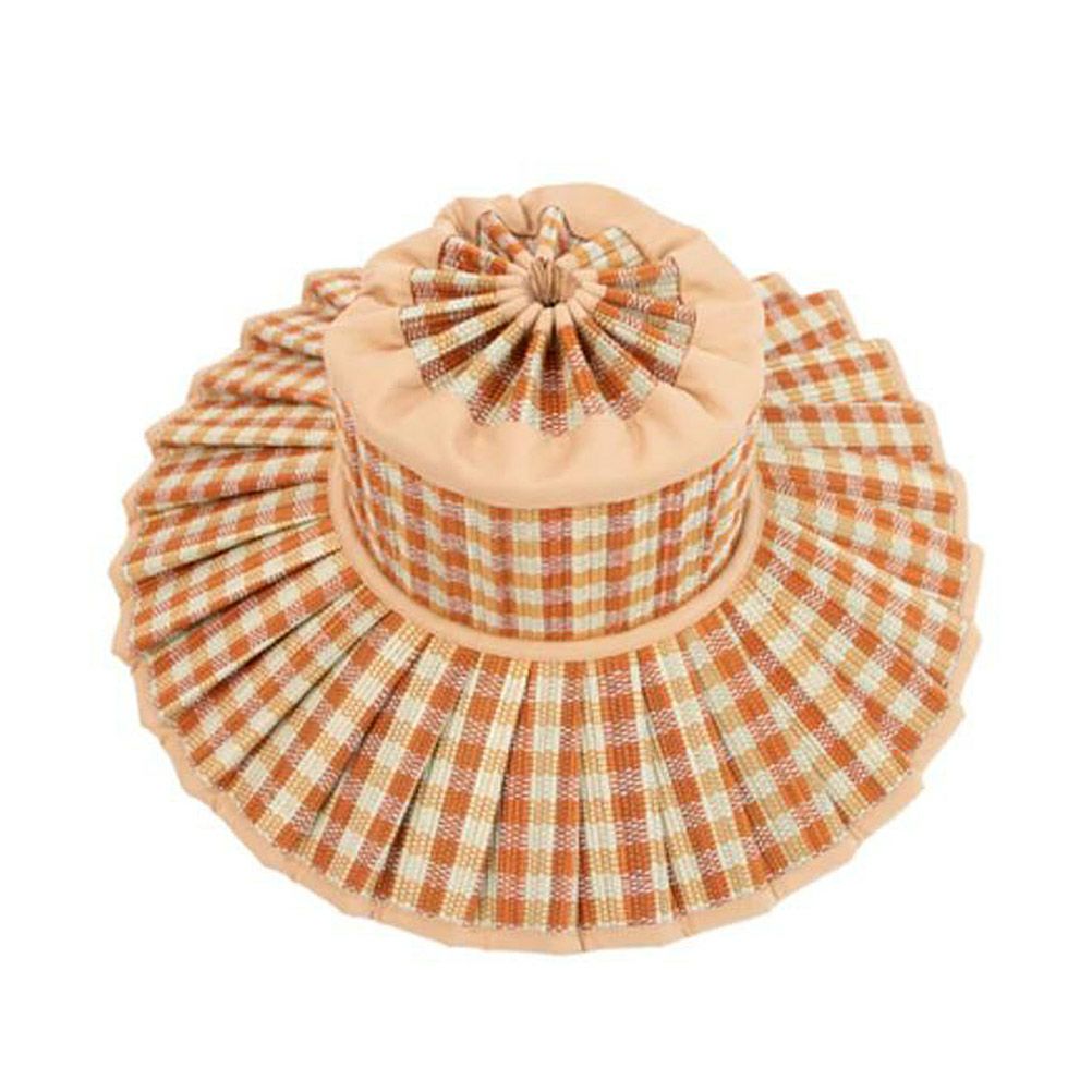 アイコン的存在でもあるプリーツ状にデザインされた広めのツバのハットは、小さく畳めてバッグに入れてもかさばらずに持ち運べます。