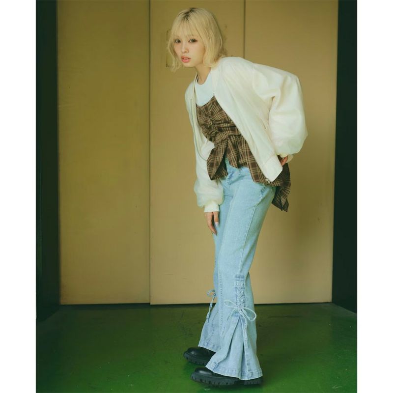 “ラブトキシック”のレースアップリボンフレアデニムパンツ