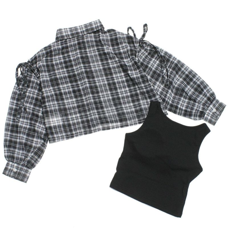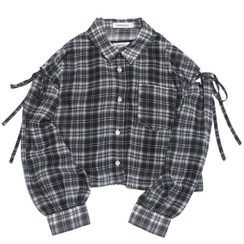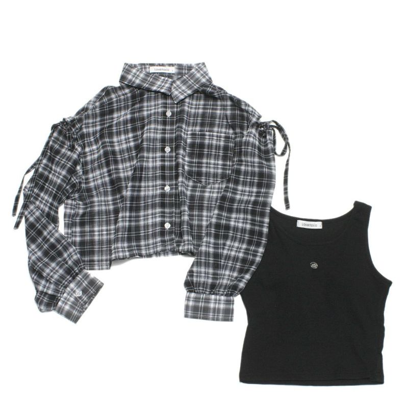 6. [ラブトキシック] インナー付シアーチェックシャツ クロ(80)