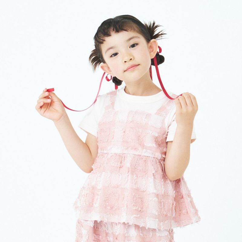 [マルーク] フサフサブロックチェックチュニックTシャツ ピンク系(26)