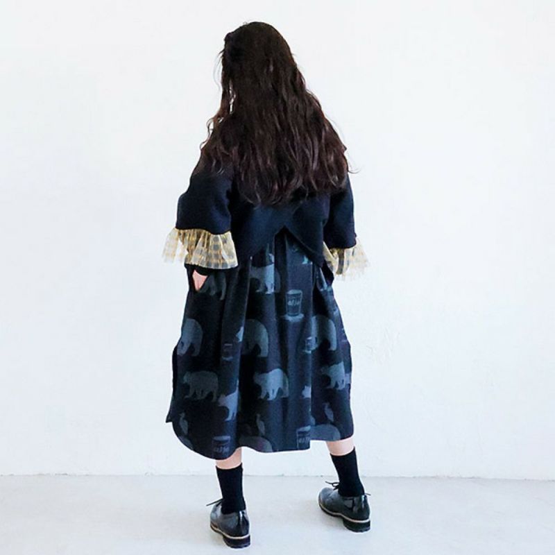 ・袖にはゴールドチェックのチュールギャザーをデザイン