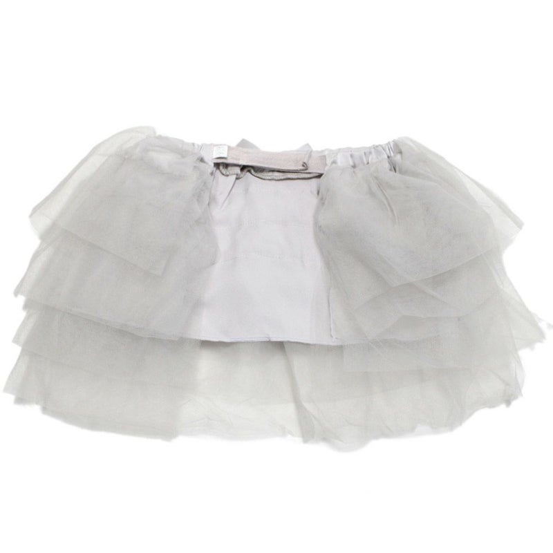 ・ふんわりと広がるチュールの巻きスカートとサテン地のベビーシューズでガーリーさをプラス。