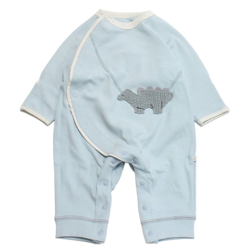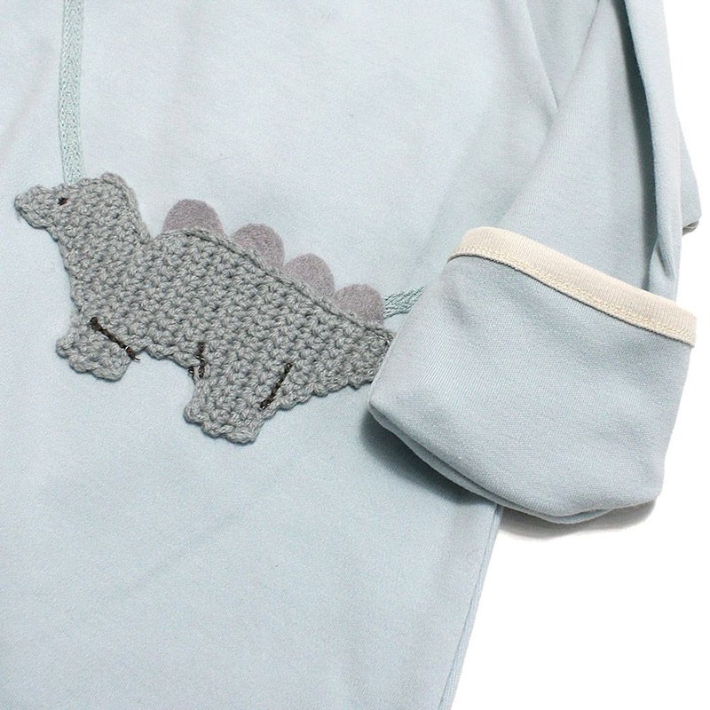 [モクモフ] 編みアップリケかんたんロンパース ブルー恐竜(BLK)