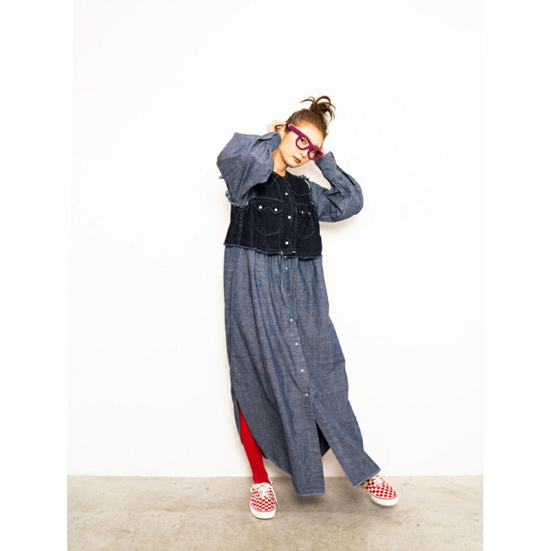 ・ウエスタンシャツとワンピースのドッキングデザイン