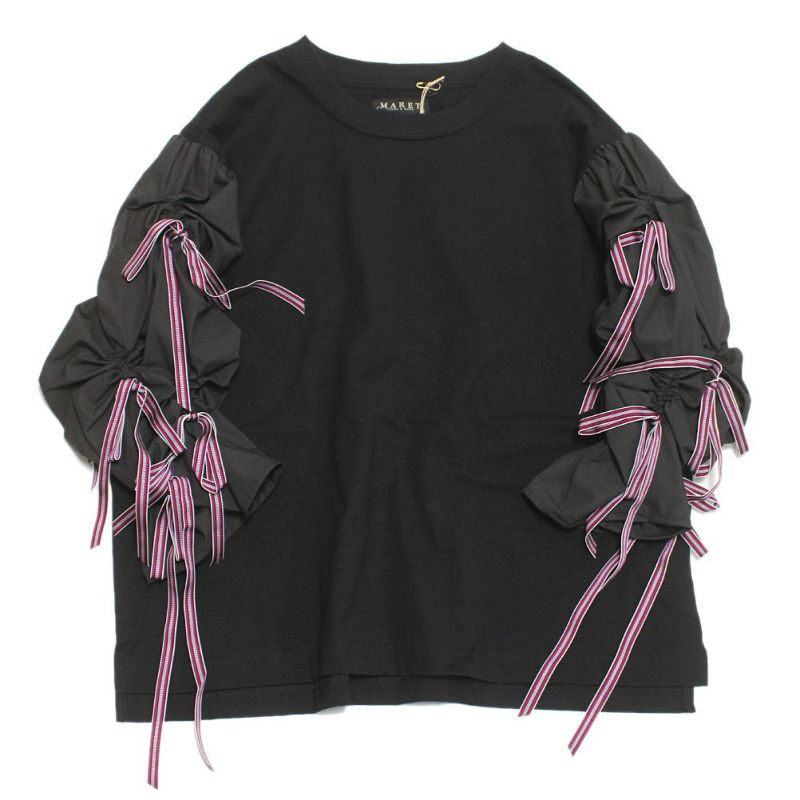 [マレ] 天竺オペラカーテンリボンT(7分袖) ブラック(2)