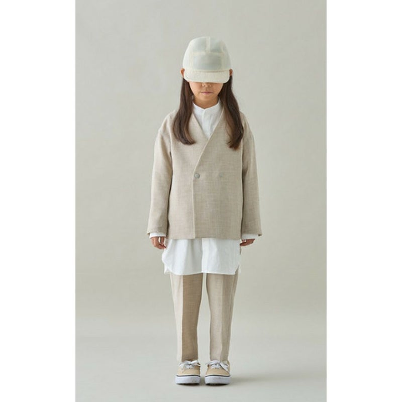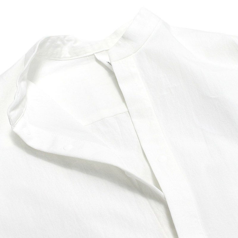 ・すっきりとした印象のバンドカラー&比翼仕立て