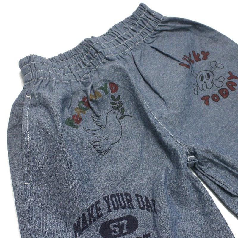 5. [メイクユアデイ] ラクガキプリントワイドパンツ サックス(SS)