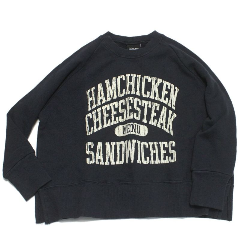 [ニードルワークス] 柔らか裏毛サイドスリットトレーナー ブラック