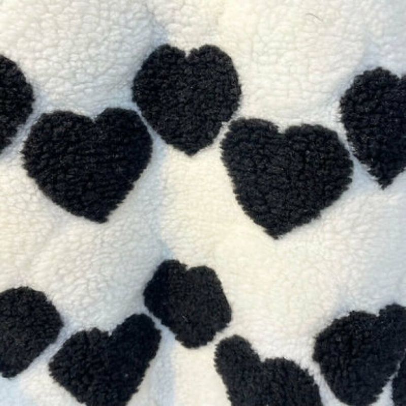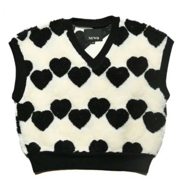 ・フラワーとハートの総柄がポイントのボアベスト