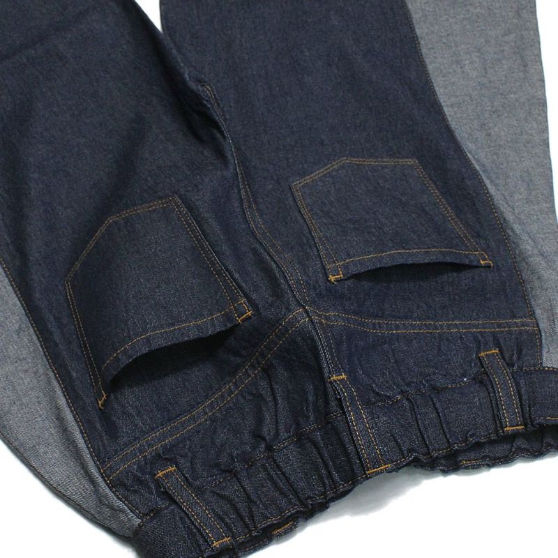 ・脇の切り替えが特徴的なデニムパンツ