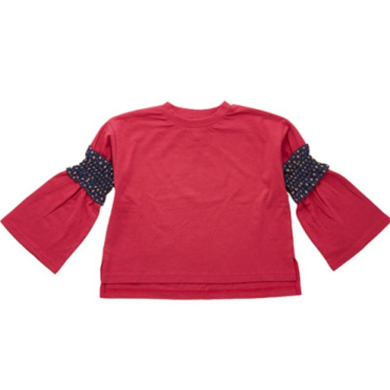 ・レトロ柄のフリルとベルスリーブが可愛い長袖Tシャツ♪
