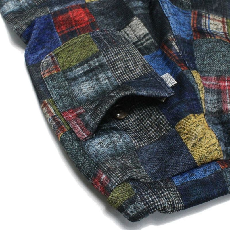 ・チェックパッチワーク風のプリントデザインが目を惹くパンツ
