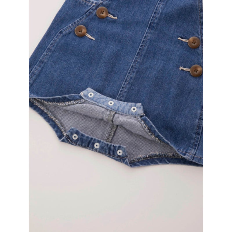 ・ひざ上丈で股下はスナップボタン付き