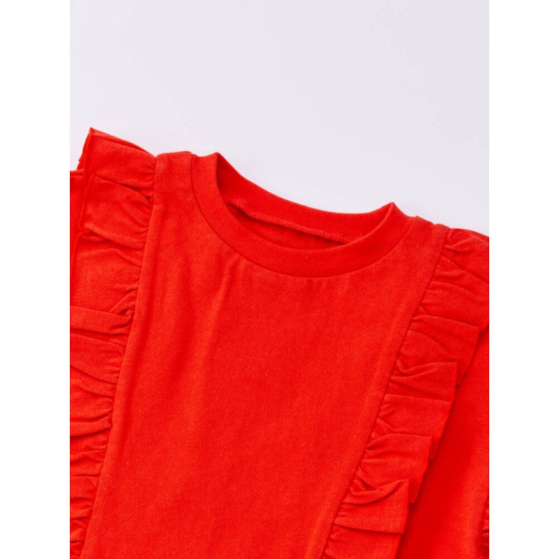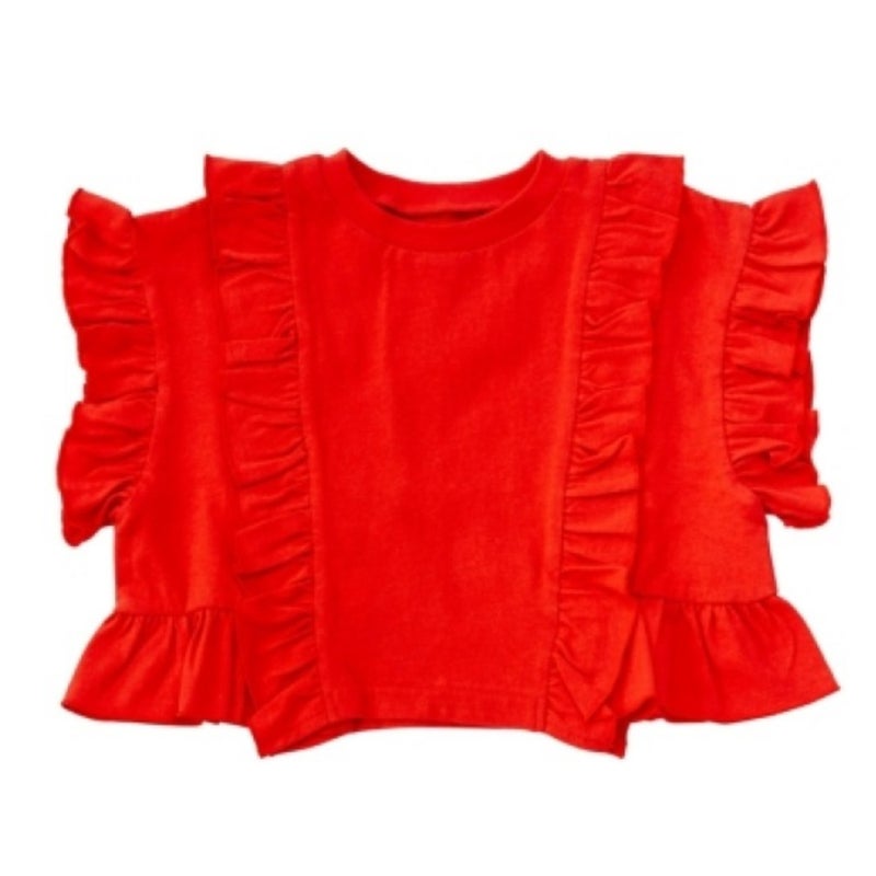 3. [オーシャン&グラウンド] フリルTシャツ レッド(RD)