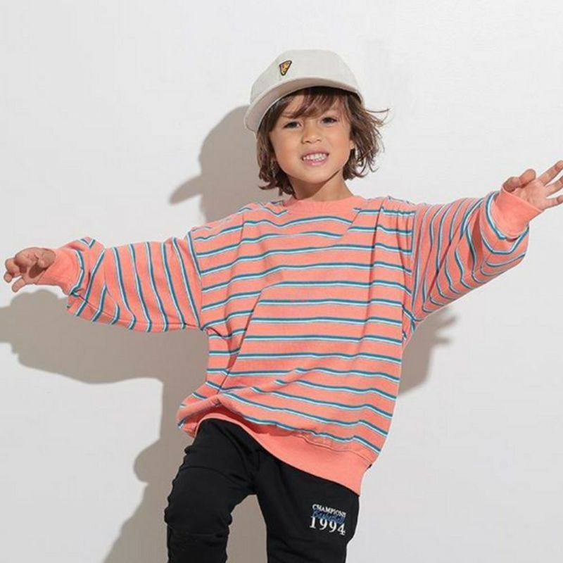 4. [オーシャン&グラウンド] マルチボーダーBIGスウェット アプリコット(AP)