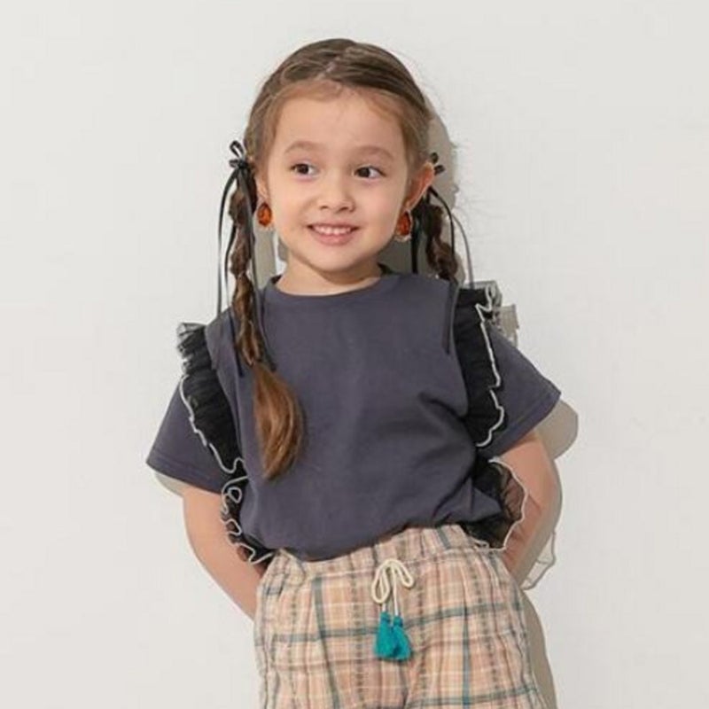 ・チュール素材のフリルを施した半袖Tシャツ