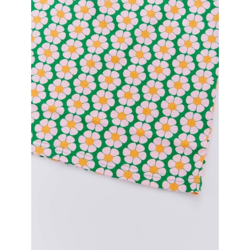 ・レトロな花柄をプリントしたヒザ上丈のワンピース