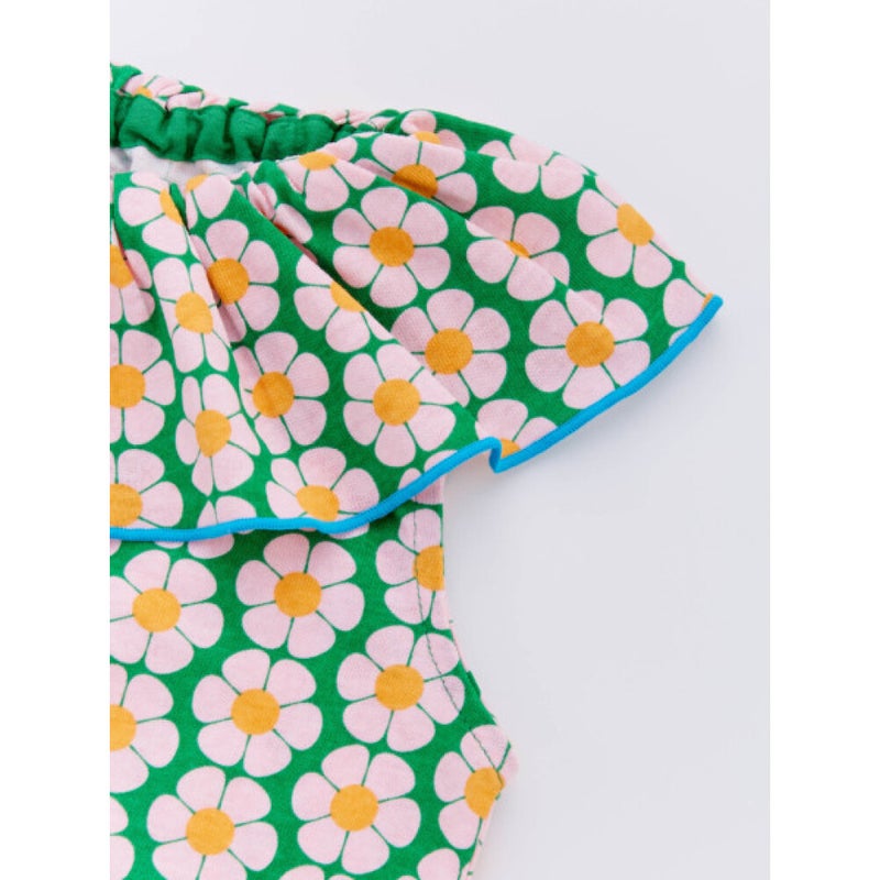 [オーシャン&グラウンド] レトロパターンフリルカラーワンピース グリーン(GR)