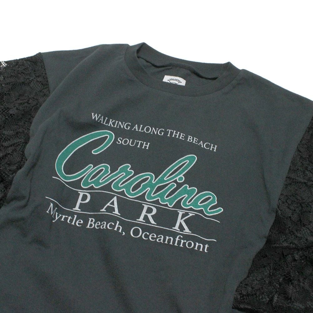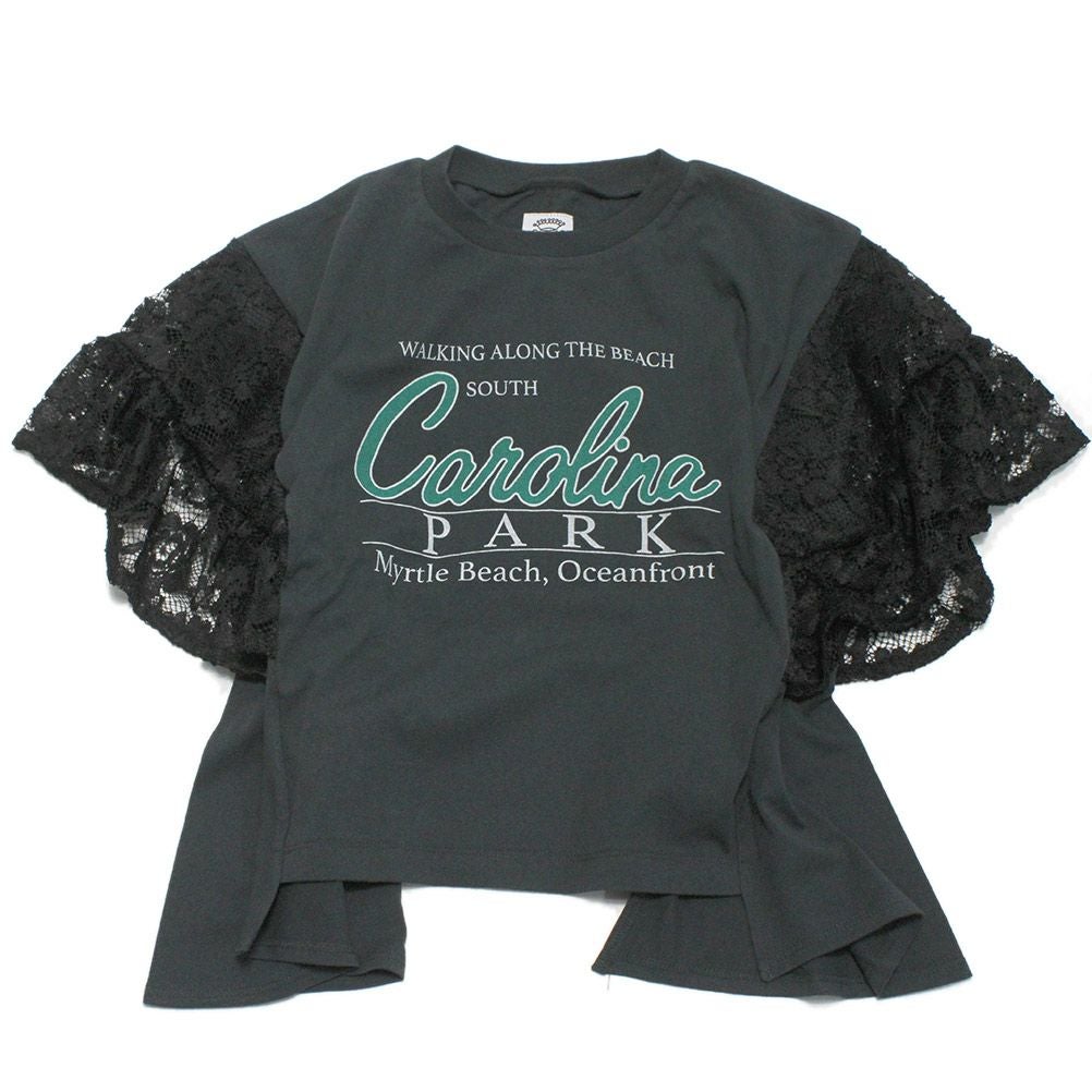 [オーシャン&グラウンド] レーススリーブリメイクTシャツ ブラック(BK)
