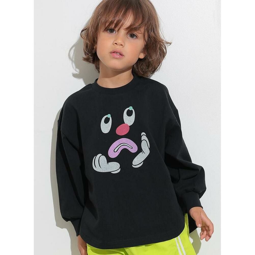 [オーシャン&グラウンド] フェイスプリントワイドロンT ブラック(BK)