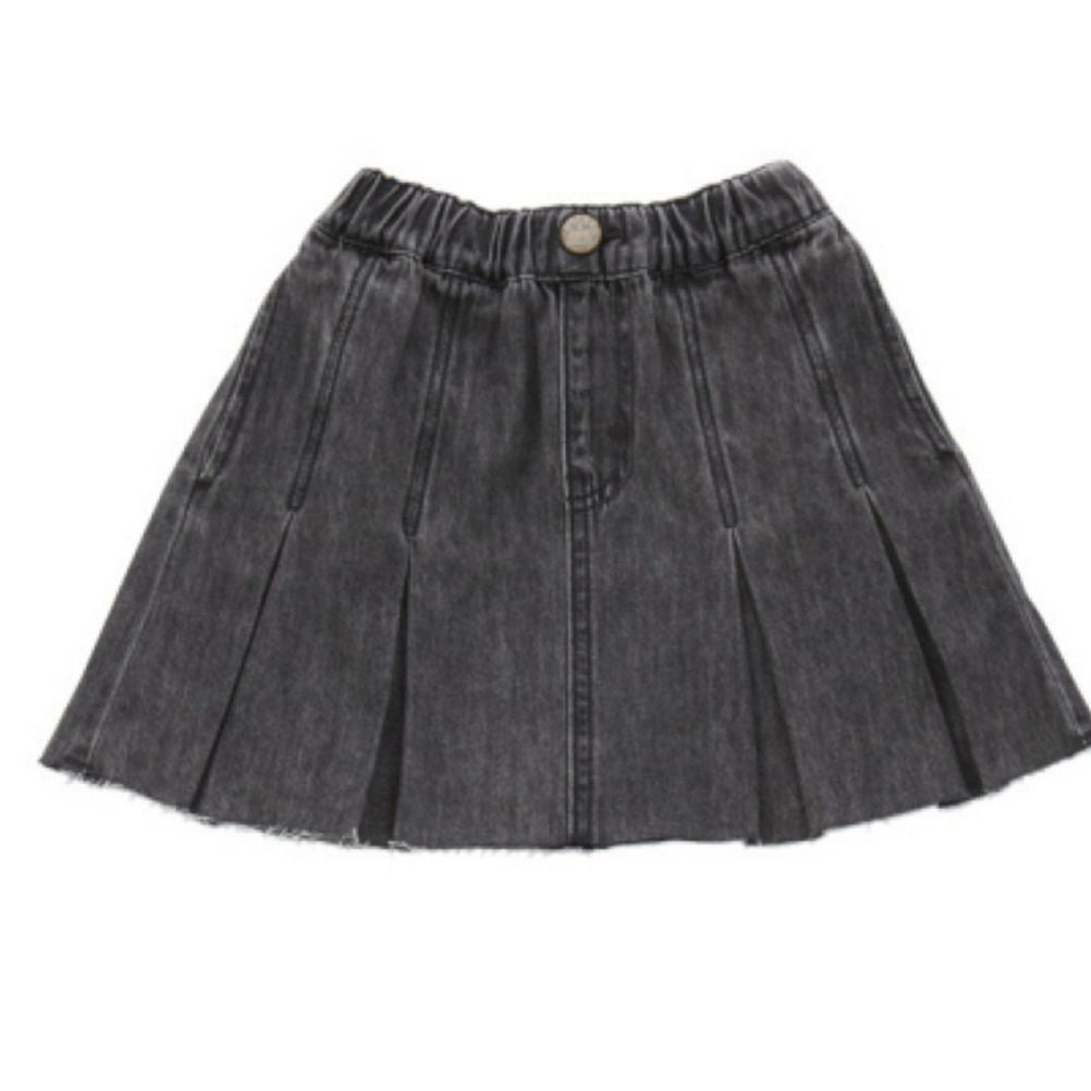 [オーシャン&グラウンド] ボックスプリーツデニムミニスカート ブラック(BK)