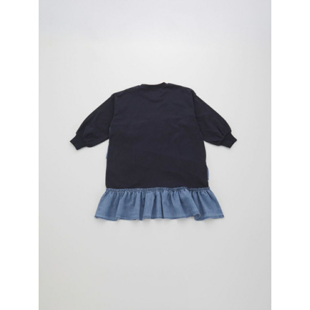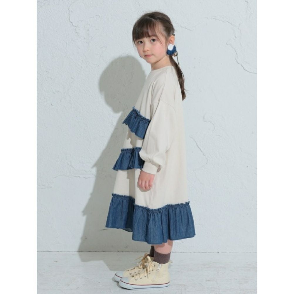 [オーシャン&グラウンド] デニムフリルドッキングカットソーワンピース キナリ(KN)
