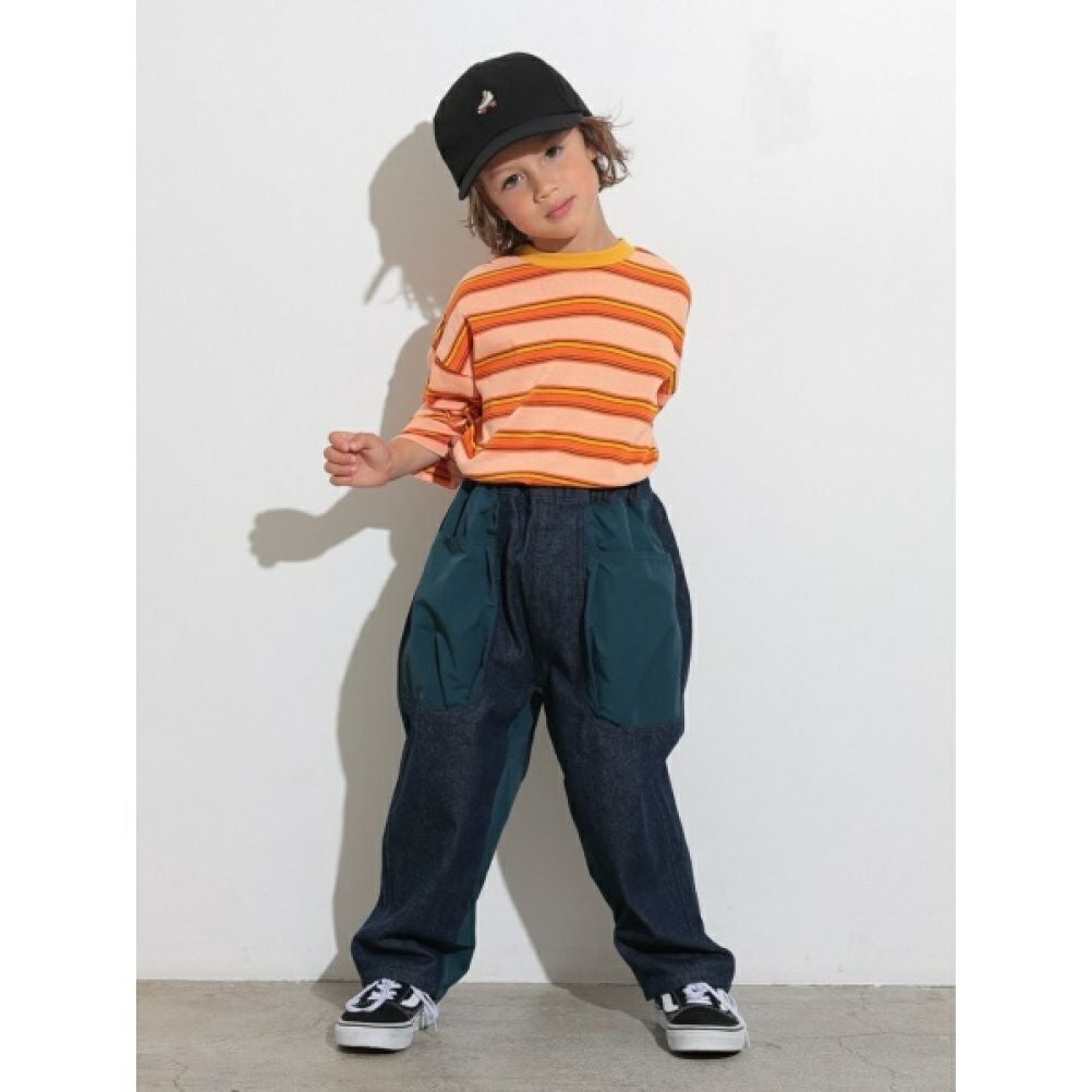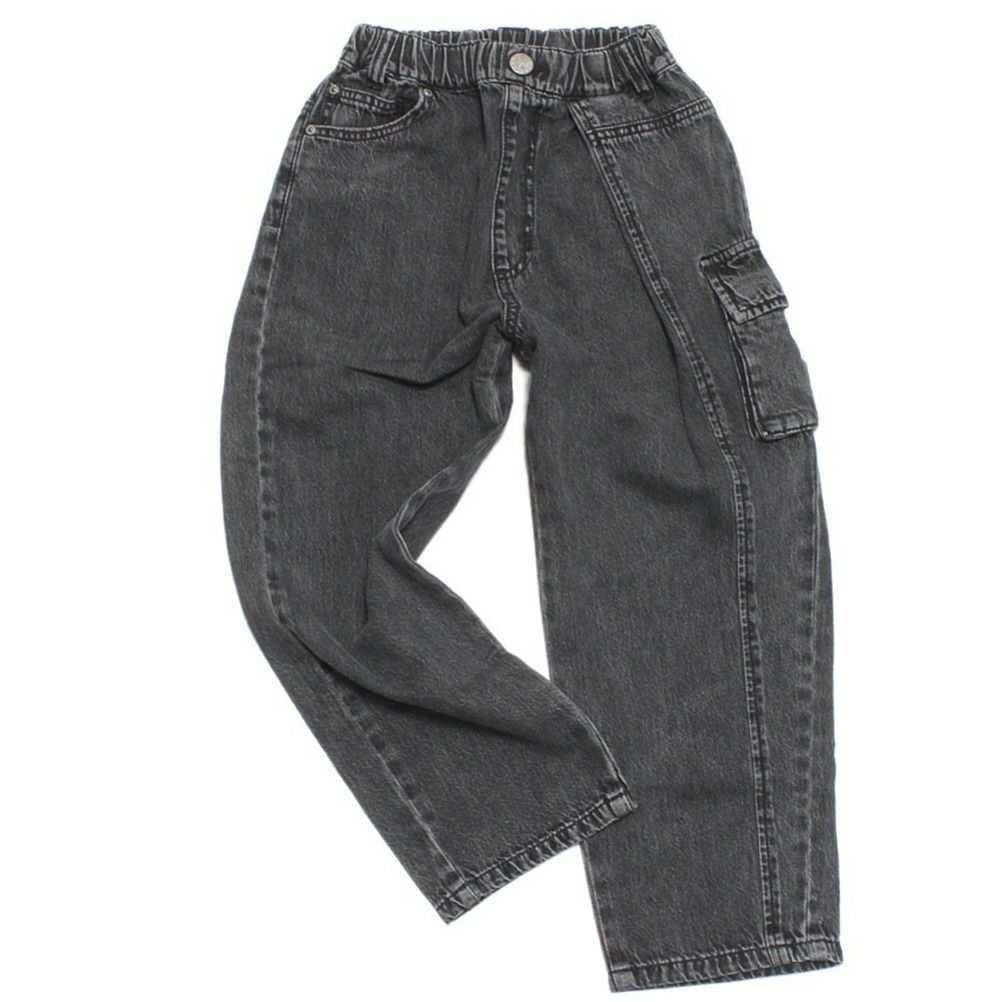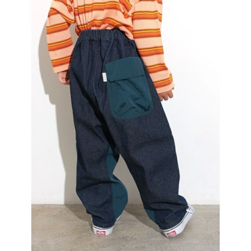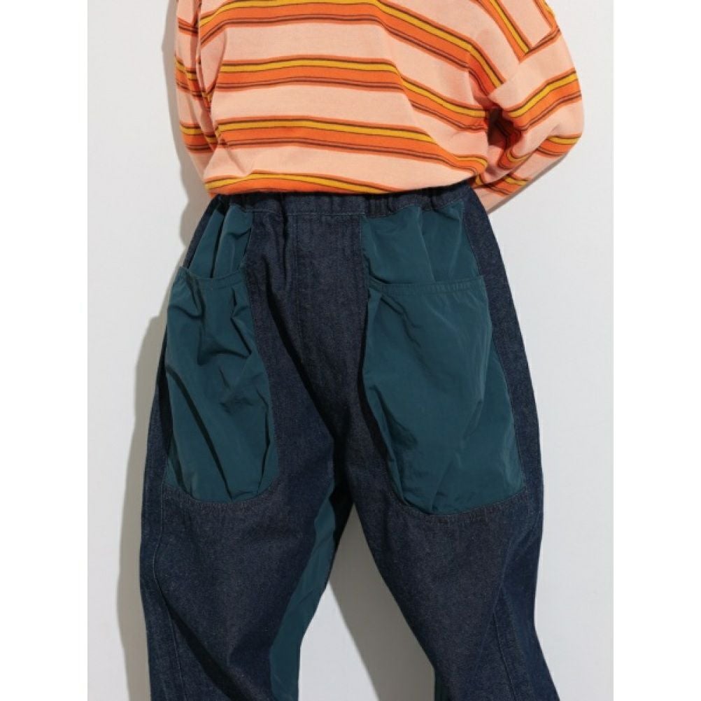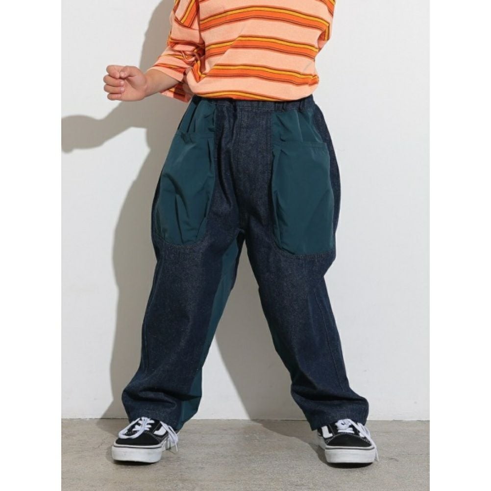 [オーシャン&グラウンド] アシンメトリーカーゴデニムパンツ ブラック(BK)