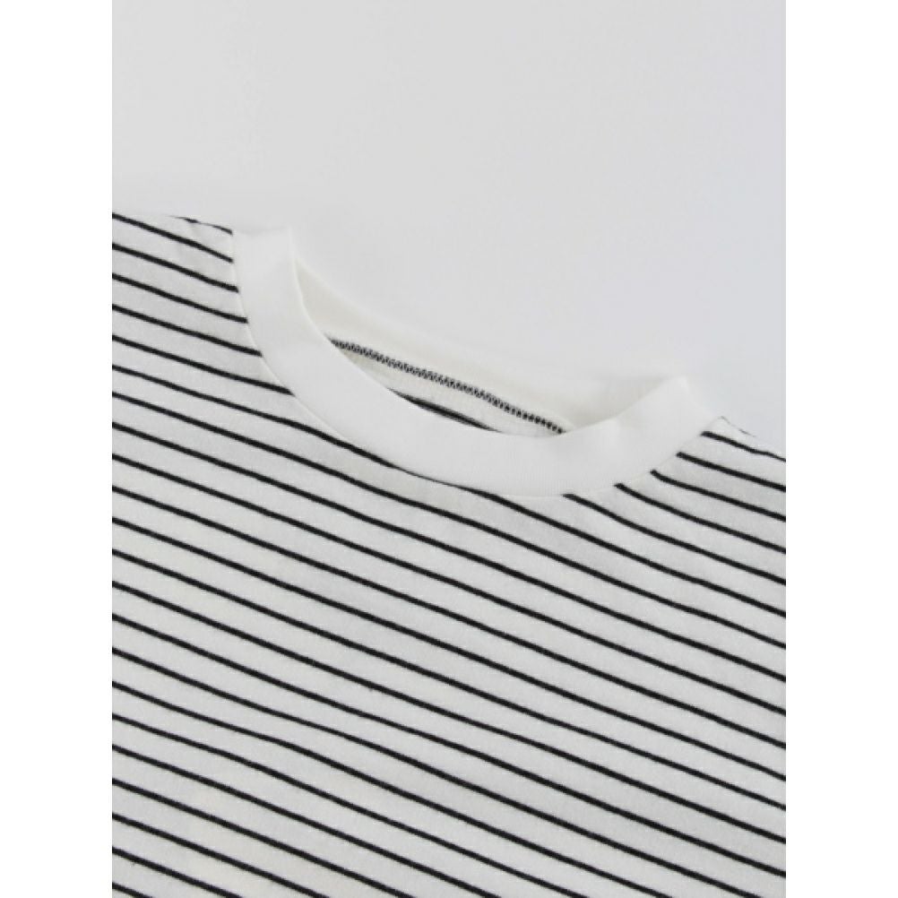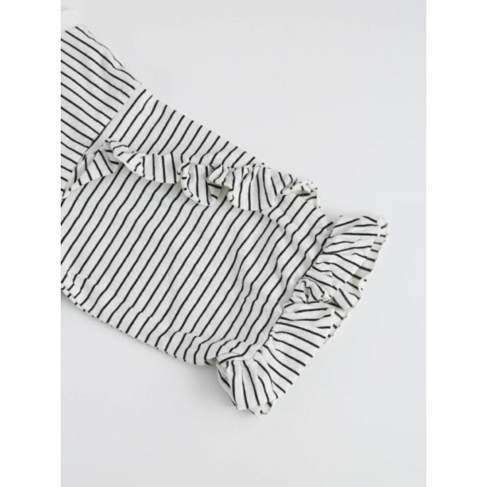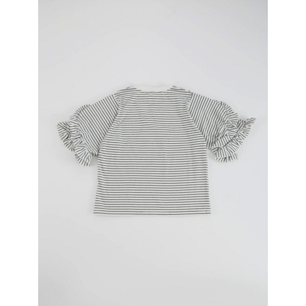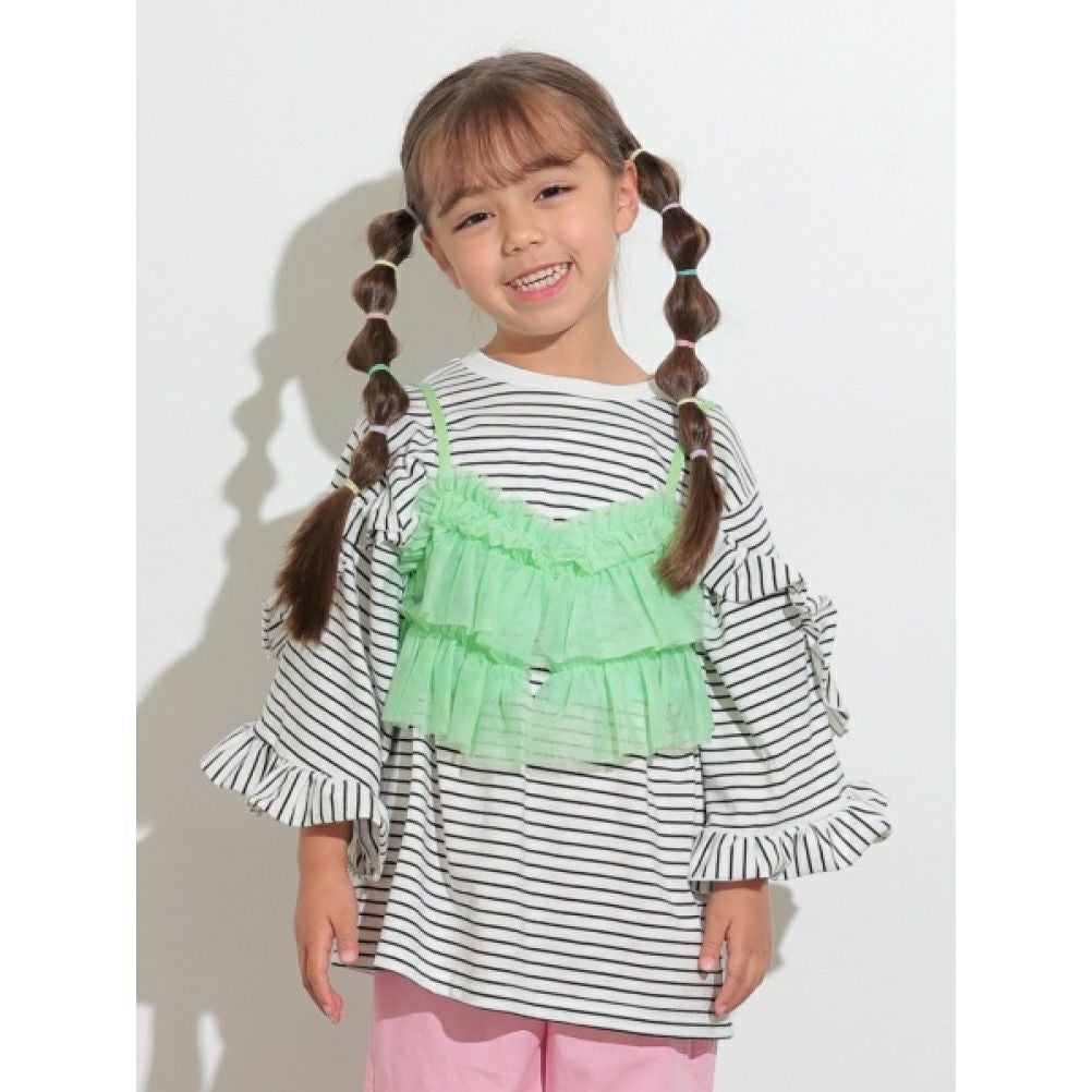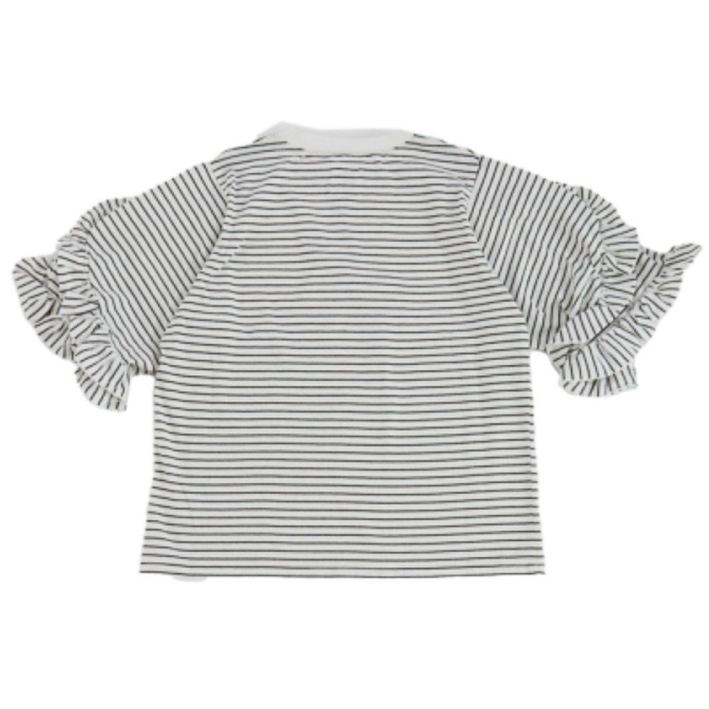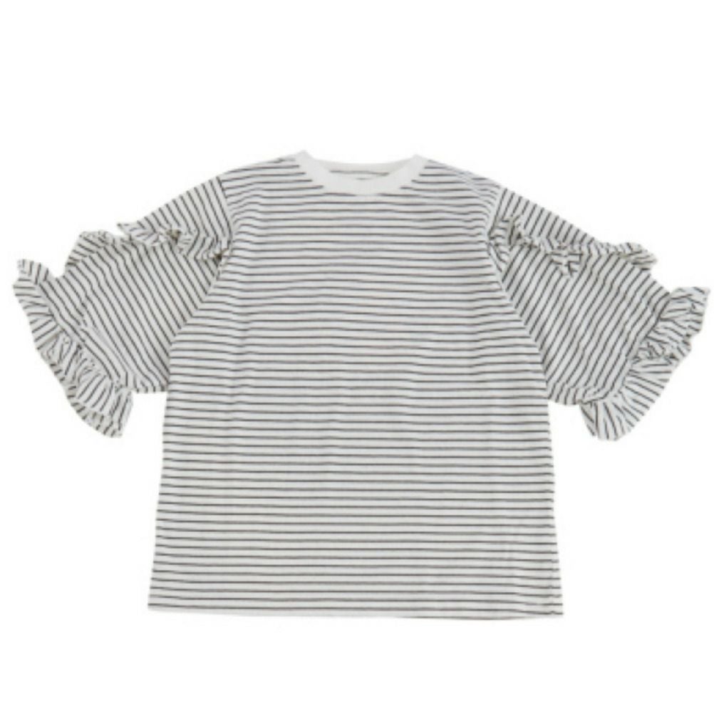 [オーシャン&グラウンド] 8分袖フリルボーダーT ブラック(BK)
