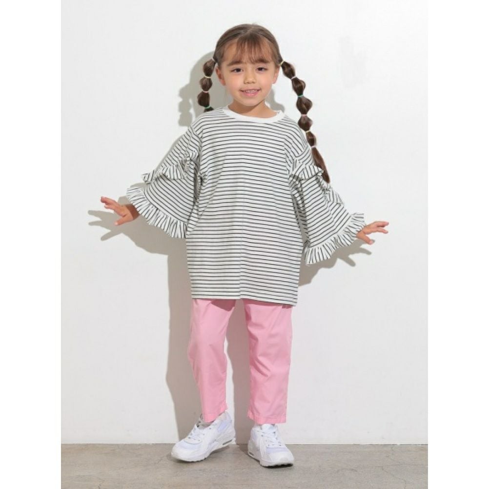 [オーシャン&グラウンド] 8分袖フリルボーダーT ピンク(PK)