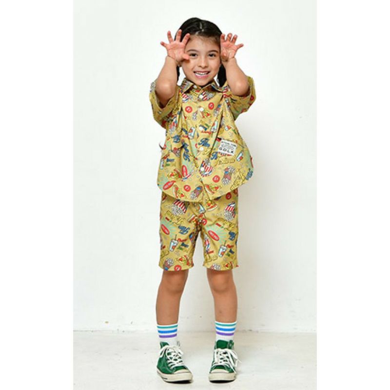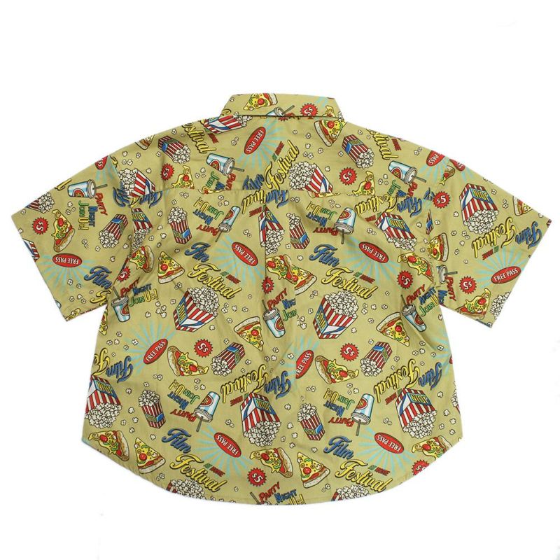 ・ポップなデザインが目を惹く総柄半袖シャツ