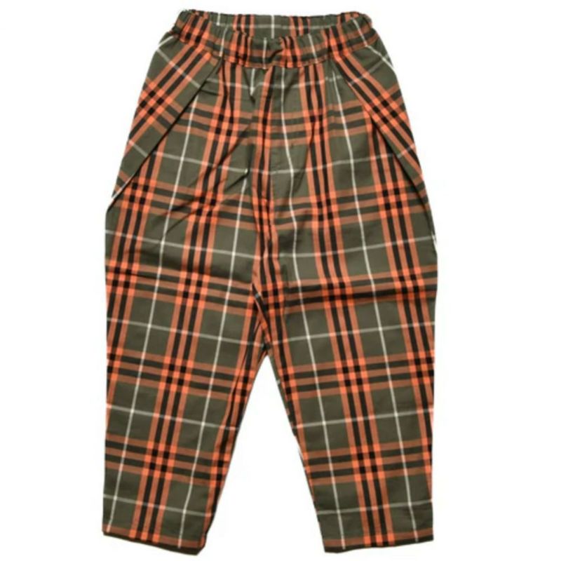 “オフィシャルチーム”のチェック柄タックワイドパンツ
