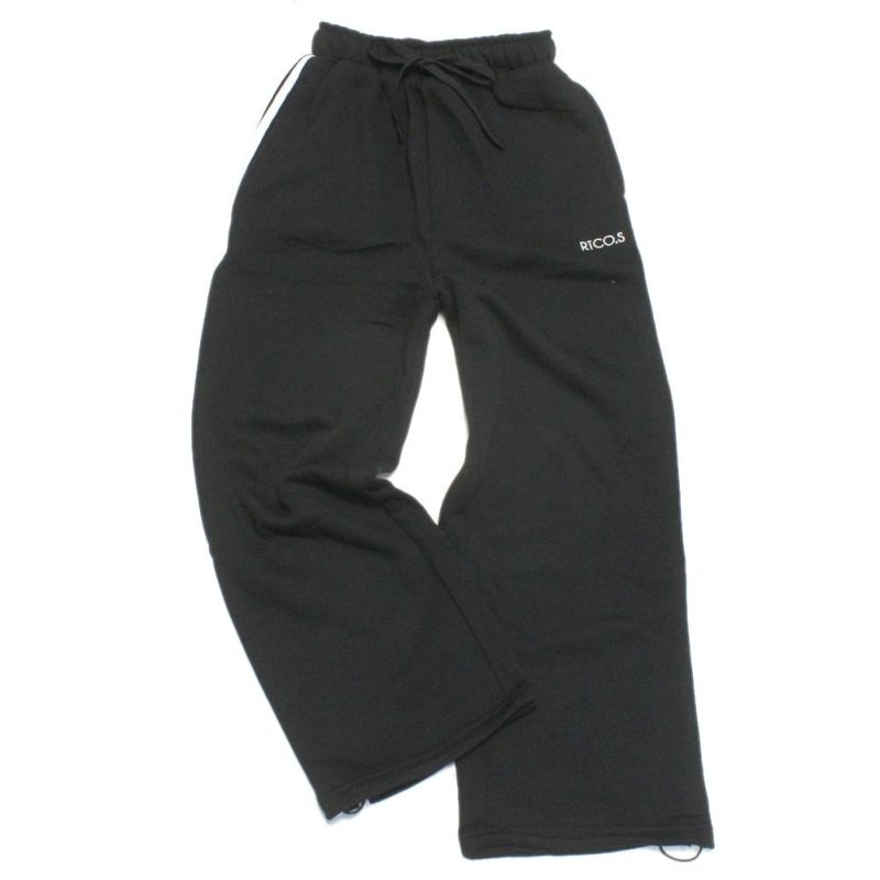 [リコシュクレ] サイドラインワイドスウェットパンツ ブラック
