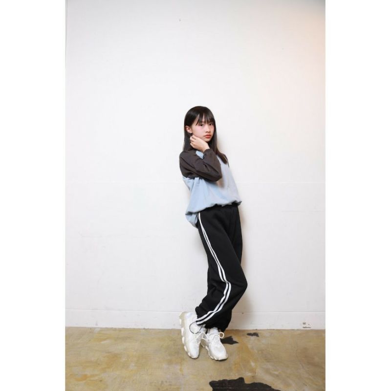 5. [リコシュクレ] サイドラインワイドスウェットパンツ ブラック