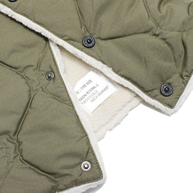 6. [タイオン] ミリタリー リバーシブル ダウンネックウォーマー ダークオリーブ×クリーム(DOC)