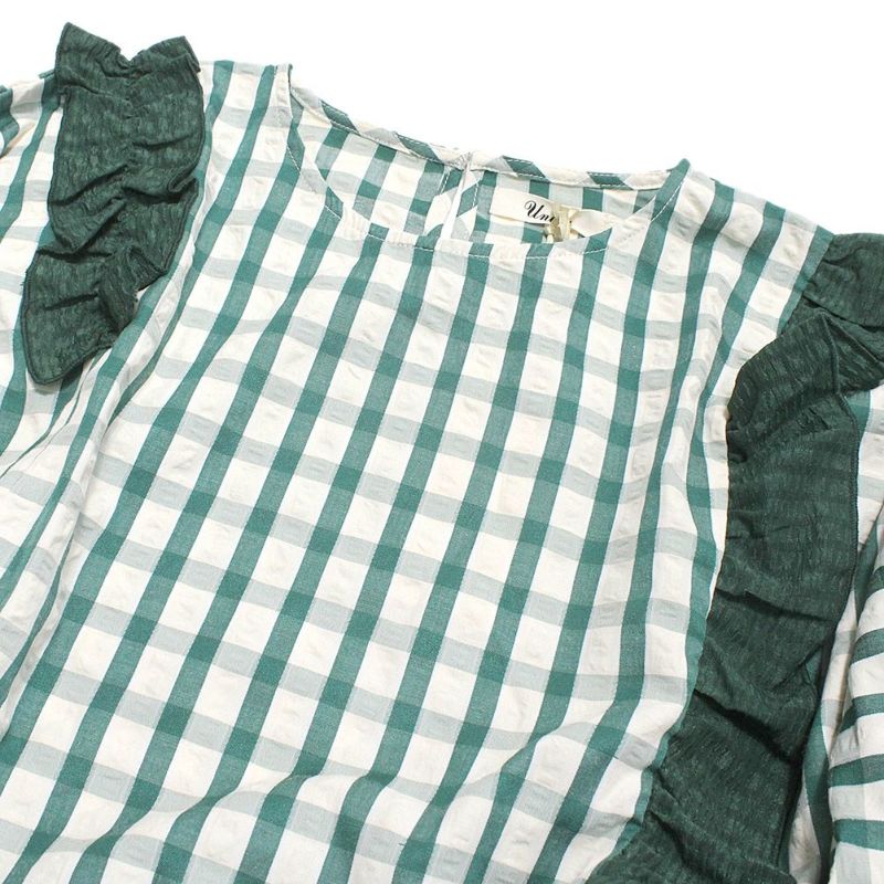 “ユニカ”のチェックドルマンスリーブフリルブラウス