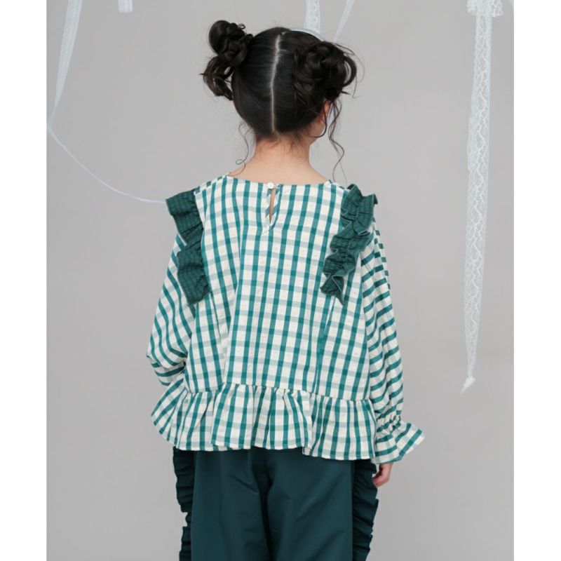 ・フリルがガーリーなチェック柄ブラウス