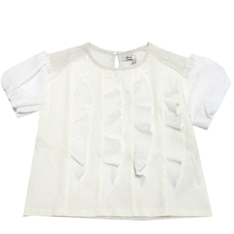 “ユニカ”のドットフリル異素材バルーンスリーブTシャツ